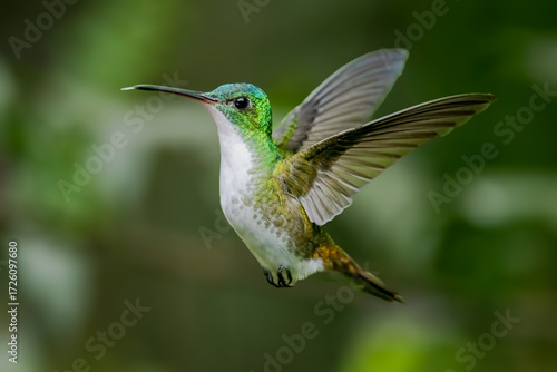 © Leon Burda, Fototapeta premium Andean Emerald Hummingbird in Flight,