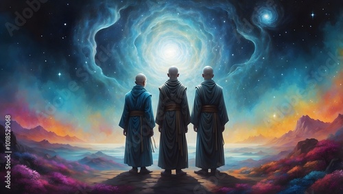 Obraz premium Andere Welt - Buddhistische Mönche - Buntes Gemälde