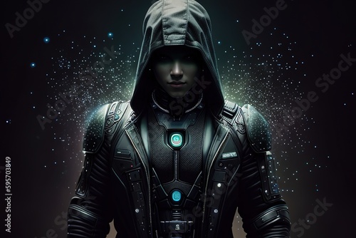Fototapeta premium Android in matrix space. Artificial intelligence in a female form. Generative AI.