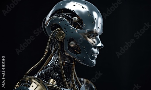 Naklejka premium Android robot robot head close-up, generative AI