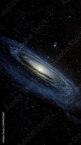 Obraz premium Andromeda Galaxy: Spiral Structure in Space, Blue and Yellow Hues