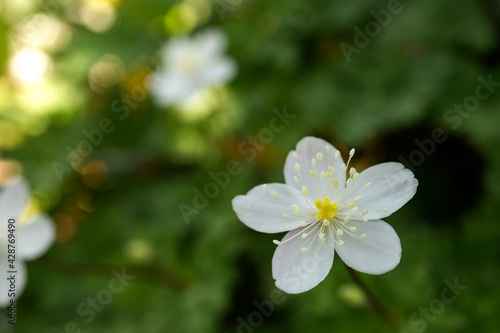 Fototapeta premium ニリンソウの花のマクロ写真/Anemone flaccida