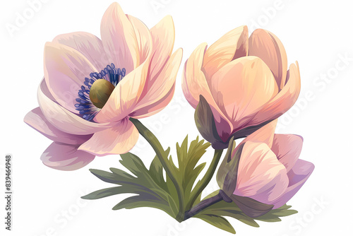 © uniyok, Fototapeta premium Anemone flowers illustration isolated on white background. Gentle colors