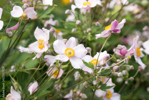 Obraz premium Anemone scabiosa pink flowers closeup selective focus