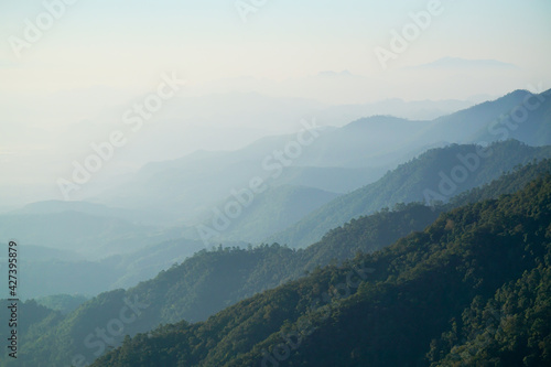 Naklejka premium Ang Khang Mountains Thailand landscape with clouds sunrise beautiful view