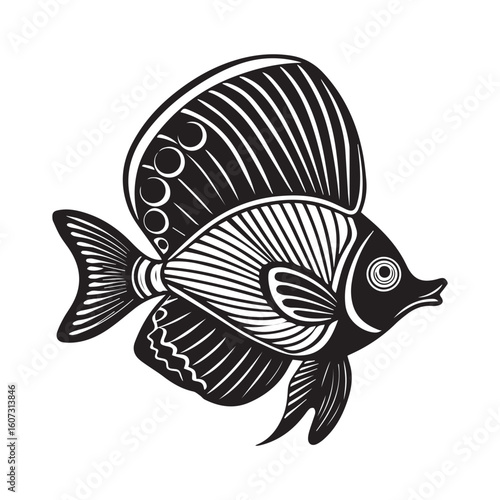 © Maksud, Obraz premium Angel fish silhouette vector illustration logo sticker