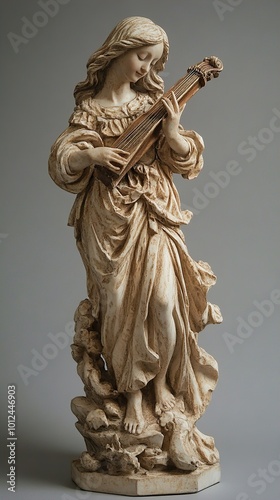 Obraz premium Angel Playing a Harp: A Classical Sculpture