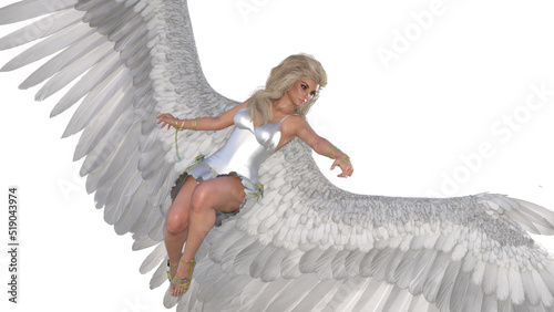 © W.S. Coda, Naklejka premium Angel poses for your pictures. Angel figurine with wings in flying poses isolated on white background. 3d rendering - illustration.