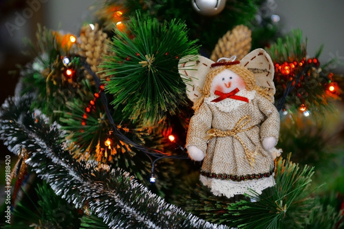 © sushytska, Obraz premium Angel toy on the Christmas tree