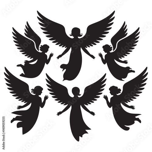 Fototapeta premium angel Vector Black silhouettes. with white background