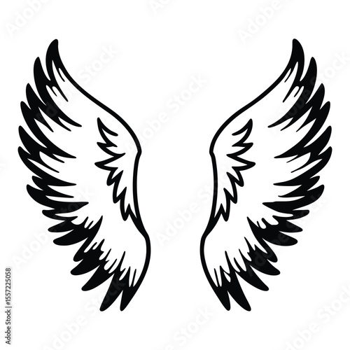 © FarzanaTabassum, Obraz premium Angel vector illustration with wings silhouette tattoo design symbol