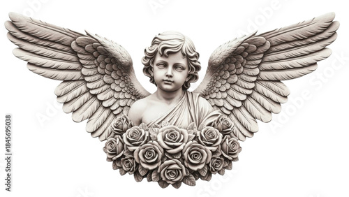 © scrdy, Obraz premium Angel Winged Cherub Among Roses on a Transparent PNG Image