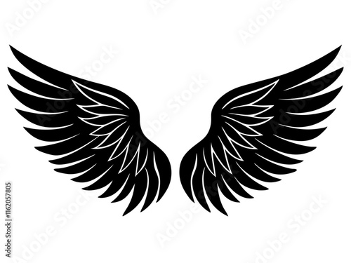 © Arnob, Obraz premium angel wings black silhouette vector, Simple silhouette Design vector icon with white background