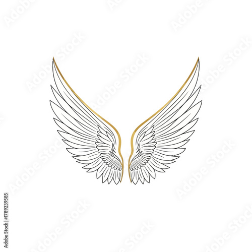 © Nostro, Fototapeta premium Angel Wings Illustration Elegant Feathered Wings Design with Golden Highlights on White Background