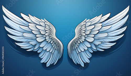 © Mis_TiKa, Obraz premium Angel wings isolated on blue background, illustration,