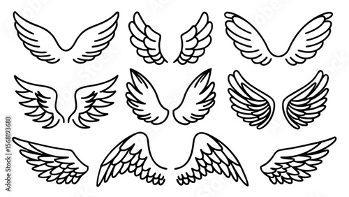 Obraz premium Angel Wings Vector Line Art Set