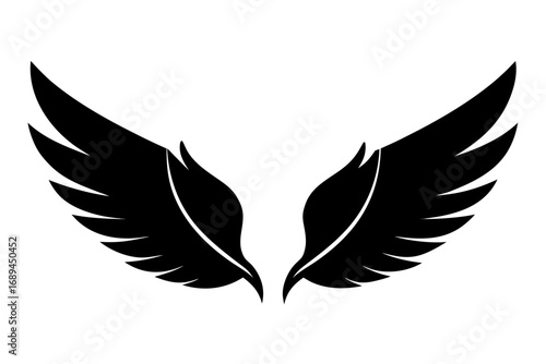 © Graphic_Design, Obraz premium angel wings, Wings collection with feathers, Black white vector illustration, Tattoo.