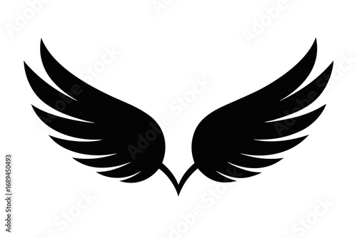 © Graphic_Design, Obraz premium angel wings, Wings collection with feathers, Black white vector illustration, Tattoo.