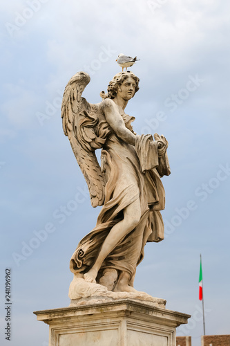 Fototapeta premium Angel with the Garment and Dice Statue in Hadrian Bridge, Rome, Italy