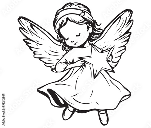 © Md.Riaz, Fototapeta premium Angel with wings, Cute fairy, Angle wings line art vector