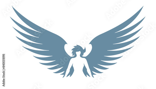 © avaye, Fototapeta premium Angel with wings, silhouete vector on transparent background