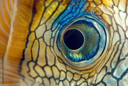 © Nico, Obraz premium Angelfish in Shallow Waters A close-up of a multicolored angelfish