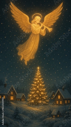 © Rawpixel.com, Obraz premium Angelic glow over snowy village.