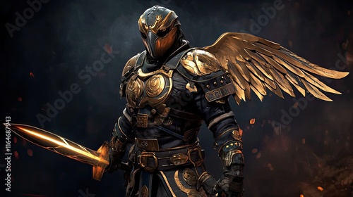 Fototapeta premium Angelic Warrior With Golden Wings And Sword