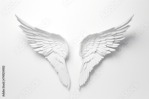 Naklejka premium Angelic White Wings Isolated. Sculptural white plaster wings on a pure white background, conveying a sense of peace and angelic grace.