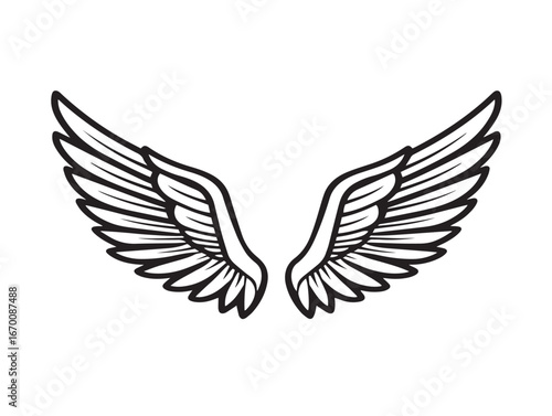 © Mitu321, Fototapeta premium Angelic Wings Icon with Beautiful Minimal Elegant Line Vector Style