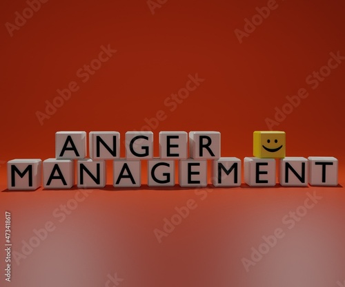 © Love Employee, Obraz premium Anger management on the white dice in the red background in 3d