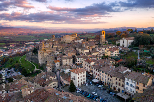 © Cavan, Fototapeta premium Anghiari village drone aerial view at sunset in Tuscany