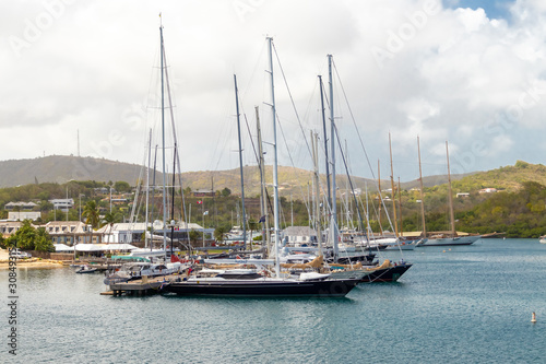 © Andy Glenn, Fototapeta premium Angielski port, St Paul / Antigua - 04 17 2018: Widok jachtów w angielskim porcie, Antigua