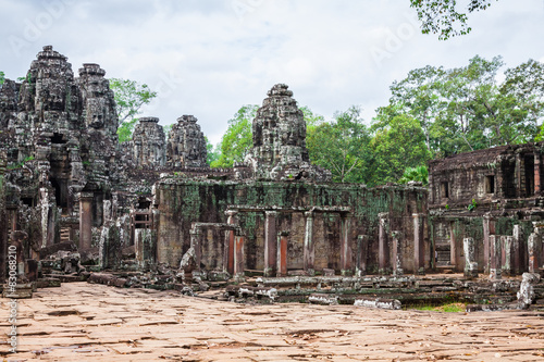 Naklejka premium Angkor Thom Cambodia. Bayon khmer temple on Angkor Wat historica