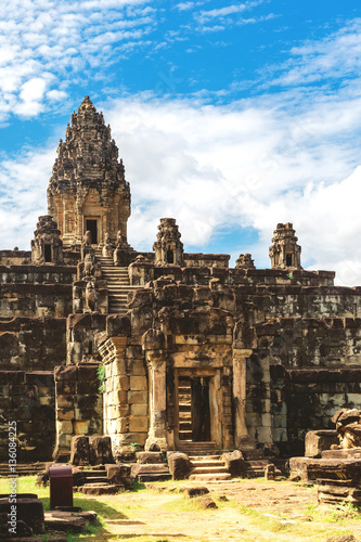 © dzevoniia, Naklejka premium Angkor Wat, Cambodia - December 6, 2016: Galleries and tourists