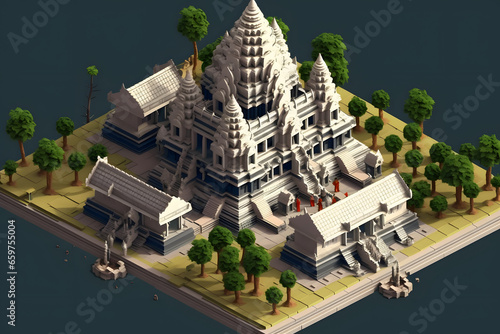 Obraz premium Angkor Wat 3d rendering isometric style