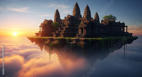 © Edi Purnomo, Naklejka premium Angkor Wat Temple Floating in the Clouds at Sunset.