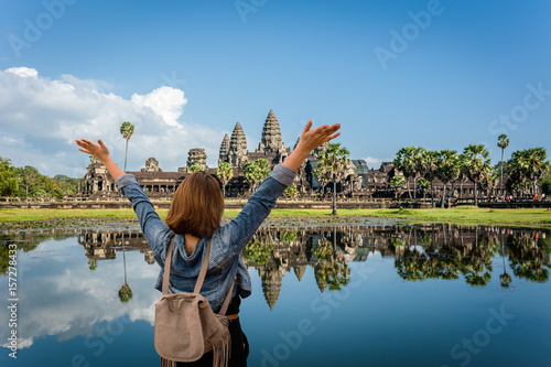 © Theerawat, Fototapeta premium Angkor Wat with reflection blue sky. Siem Reap, Cambodia. World Heritage landmark