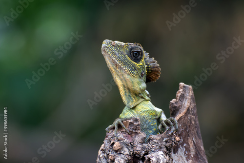 © lunaphotography, Obraz premium Angle head lizard hanging on a tree