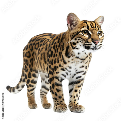 Fototapeta premium Angled view full body shot of an extremely perfect looking single Leopard animal isolated on a white transparent background