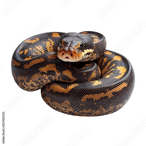 © SunCamCo, Obraz premium Angled view full body shot of an extremely perfect looking single rock python isolated on a white transparent background
