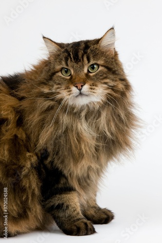 Obraz premium Angora Domestic Cat, Male sitting against White Background