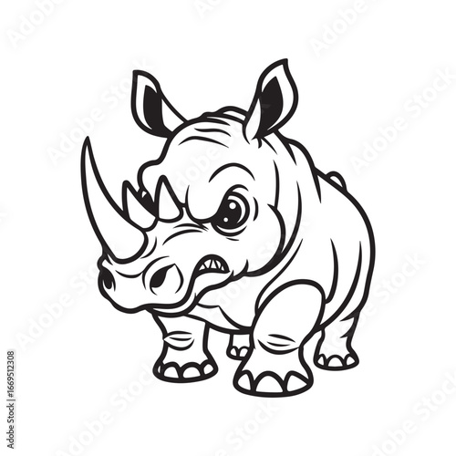 © Kamrunnahar, Fototapeta premium Angry and Grumpy Rhino Cartoon - Bold and Powerful African Animal Coloring Page