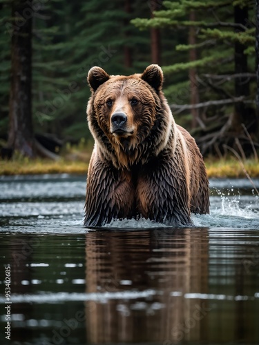 © Nishan, Fototapeta premium Angry bear with nature. Generative AI.