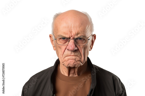 © JetHuynh, Obraz premium Angry belligerent senior man looking at the camera white background copy space