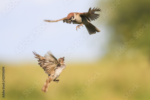 © nataba, Obraz premium angry birds sparrows fly and fight wings