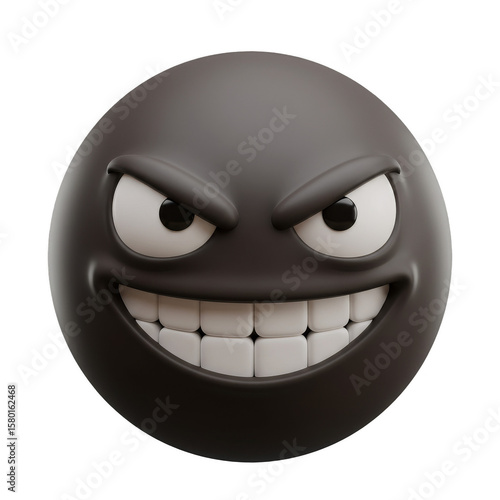 © Jin, Fototapeta premium Angry Black Emoji 3d Rendering Cartoon Face Grinning Evil Character