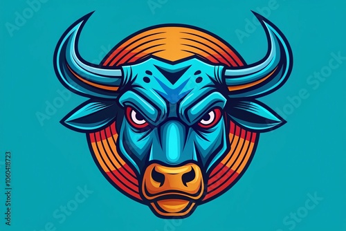 Fototapeta premium Angry Bull with Bitcoin Symbol in Minimalist Style - Vibrant Vector...
