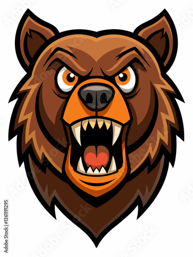 Obraz premium Angry Cartoon Bear Head – Fierce Expression with Snarling Mouth and Sharp Fangs in Sports Team Logo Style