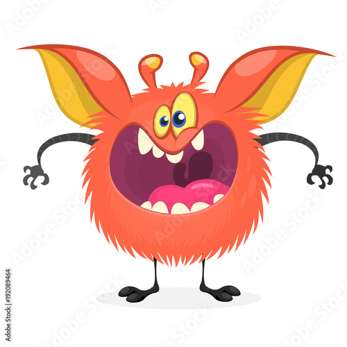 © drawkman, Fototapeta premium Angry cartoon fat monster. Vector illustration of red monster character with large mouth. Halloween design